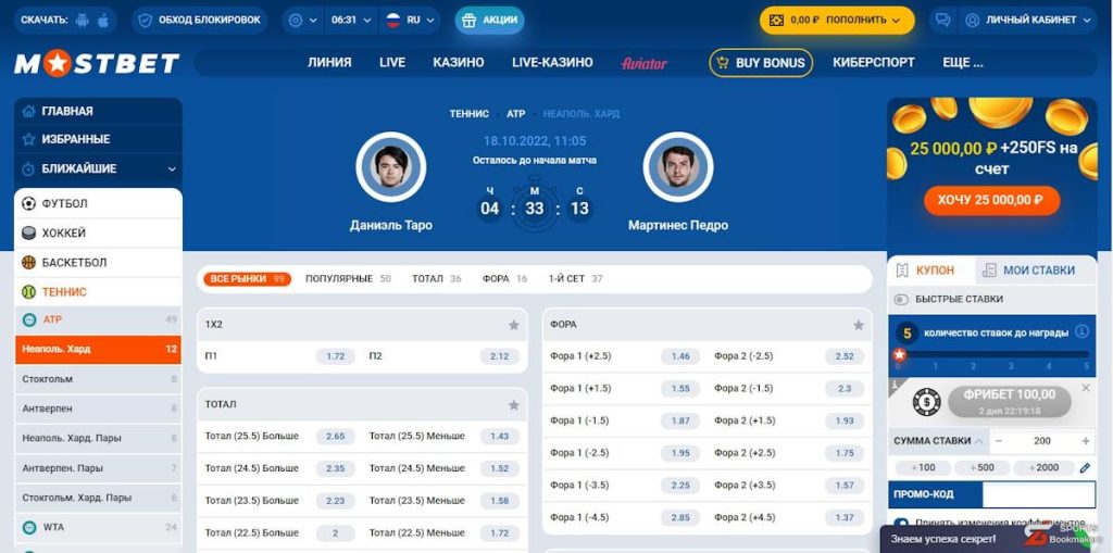 Каждый новый пользователь букмекерской конторы Mostbet получает возможность активировать приветственное предложение, которое считается одним из наиболее щедрых среди конкурентов. При первой регистрации клиенту предоставляется поощрение до 25 000 рублей, которое можно использовать для заключения спортивных пари. Те, кто планирует попробовать себя в разделе с автоматами, также могут рассчитывать на бонус до 25 000 рублей и дополнительно получить 250 бесплатных вращений на популярных слотах. Такой стартовый пакет позволяет протестировать игровые возможности платформы без серьёзных расходов и познакомиться с ассортиментом развлечений.